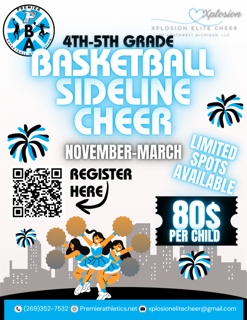 Welcome to the home of Premier youth cheerleading. Premier engages with youth in the grades of K – 6th participate in our program. Its objective is to firmly implant the ideals of leadership, teamwork, good sportsmanship, and self-confidence in each participant. To expand our program reach, in 2023, we partnered with Kalamazoo Growlers Baseball and Xplosion Elite Cheer.